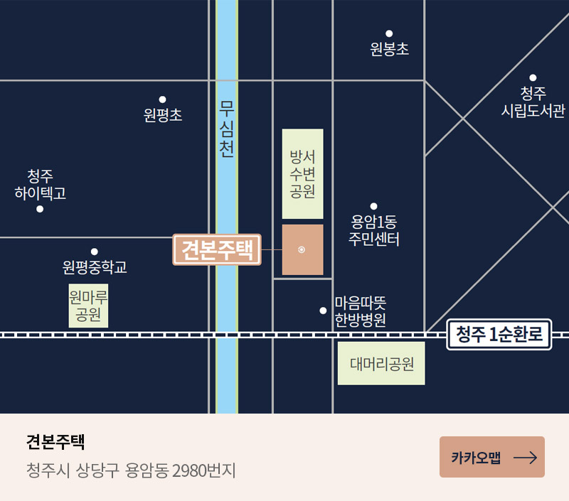 무심천, 미평천 등 쾌적한 자연환경이 가까운 자리
