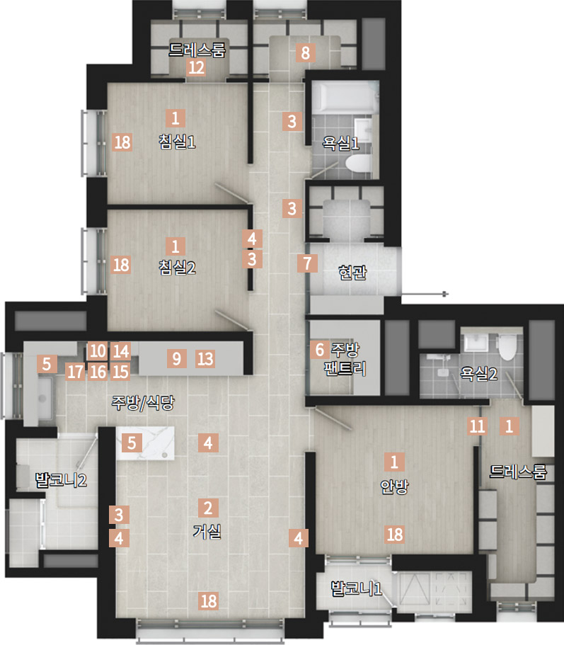 ※ 본 홍보물에 표기된 세대별 면적은 전용면적 기준으로 소수점 넷째 자리까지 표현되며, 면적 계산상 소수점 다섯째 자리에서 정리하는 방식으로 인해 연면적과 전체 계약면적과는 소수점 이하에서 약간의 오차가 생길 수 있으며, 면적은 사업계획승인 변경 등으로 실 시공 시 변경될 수 있습니다. ※ 평면 및 가구, 마감재, 디자인, 사양, 색상, 제품품목 등은 임차인모집공고 이후 공개되는 견본주택 기준으로 시공됩니다. 견본주택에 표현되지 않은 기타 공용부의 경우, 사용승인도서를 기준으로 시공됩니다. ※ 가구 추가선택품목과 마감재 및 가전기기 추가선택품목은 계약 시 견본주택에서 최종 확인하시기 바랍니다.