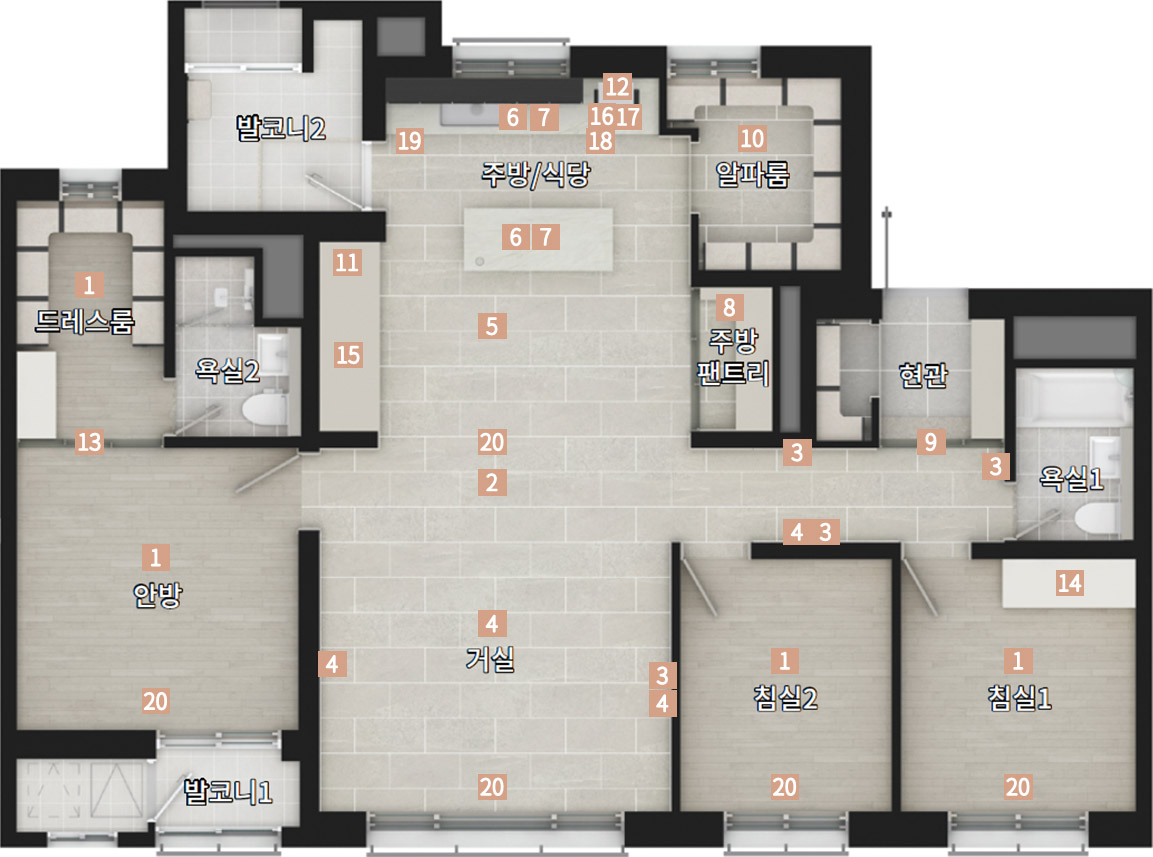 ※ 가구 추가선택품목과 마감재 및 가전기기 추가선택품목은 계약 시 견본주택에서 최종 확인하시기 바랍니다.